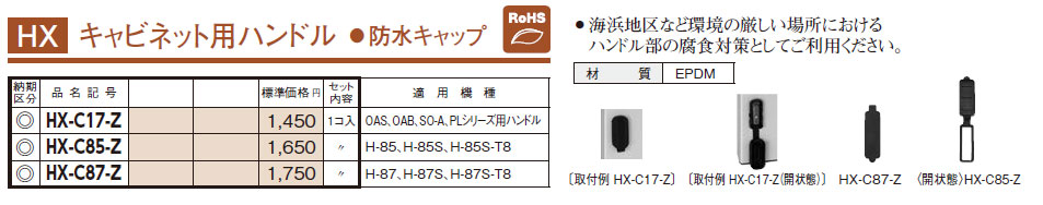 HX-C85-Z キャビネット用ハンドル 防水キャップ
