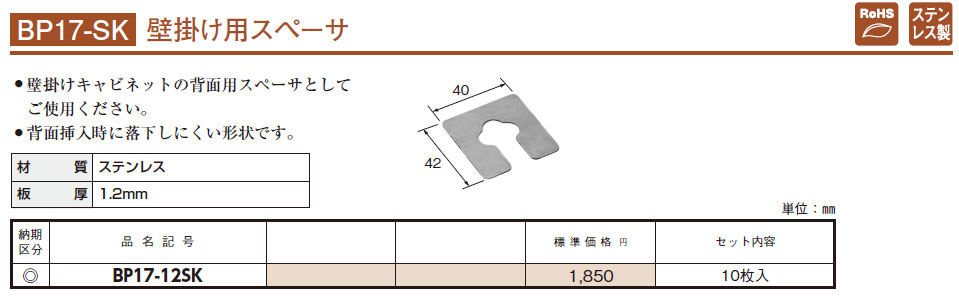 BP17-12SK 壁掛け用スペーサ