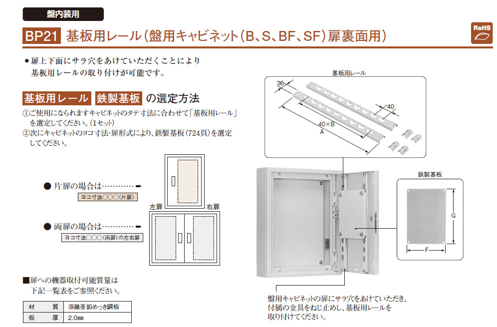 BP21-7 基板用レール(盤用キャビネット扉裏面用)
