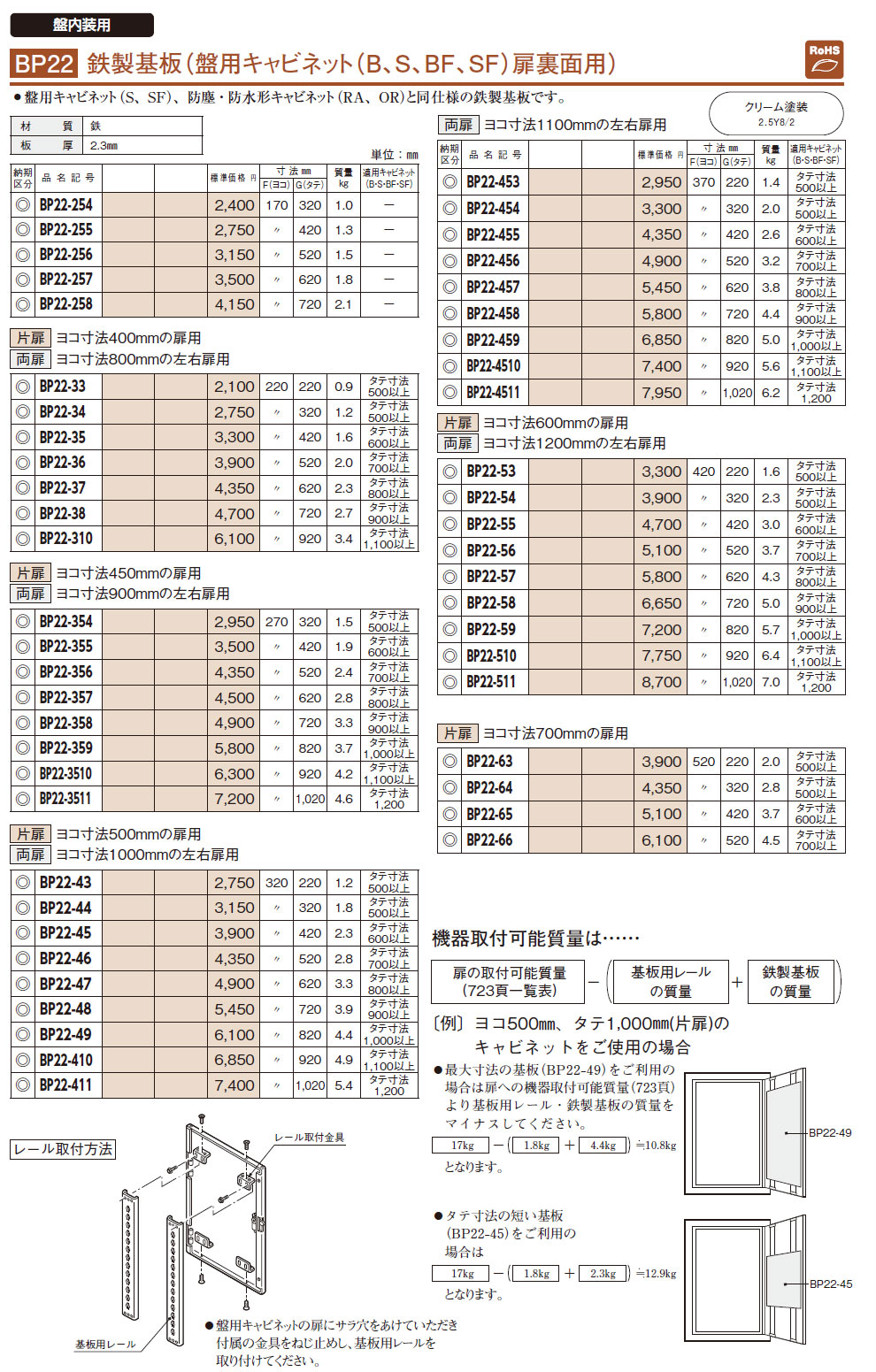 BP22-44 鉄製基板(盤用キャビネット扉裏面用)