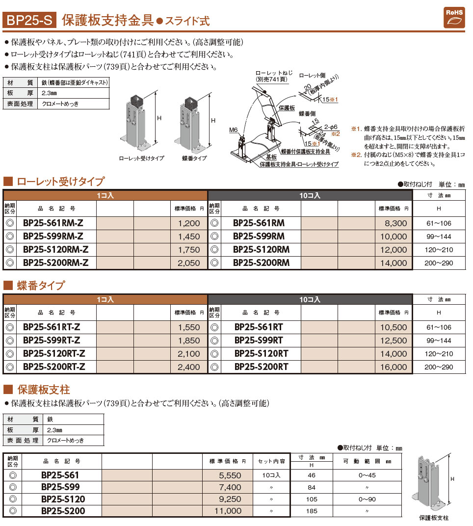 BP25-S200 保護板指示金具・スライド式 保護板支柱 10コ入