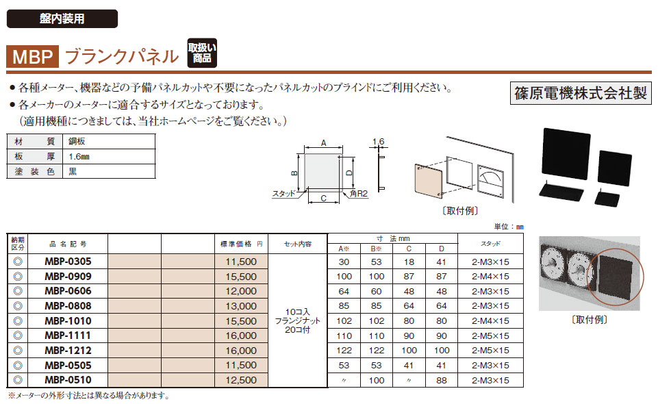MBP-1212 ブランクパネル 10コ入 フランジナット20コ付