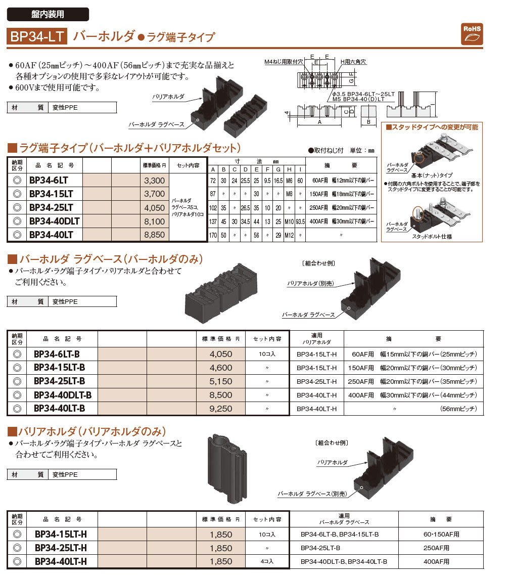 BP34-25LT-H バーホルダ ラグ端子タイプ (バリアホルダのみ)