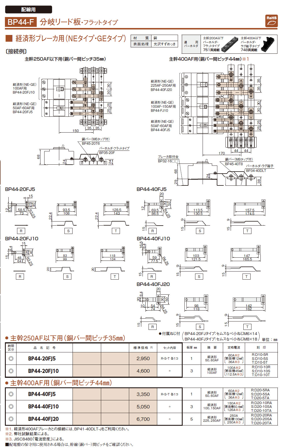 BP44-40FJ10 分岐リード板 経済形ブレーカ用 主幹400AF用