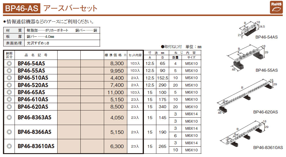 BP46-83610AS アースバーセット 2コ入