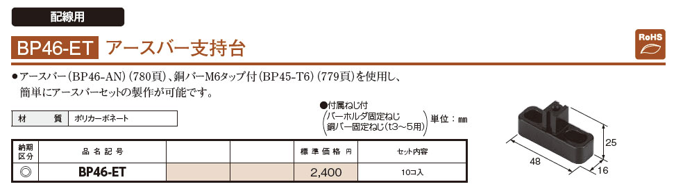 BP46-ET アースバー支持台 10コ入