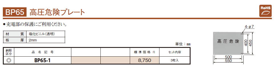 BP65-1 高圧危険プレート 3枚入