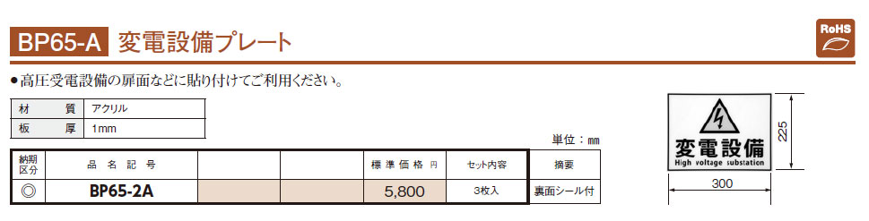 BP65-2A 変電設備プレート 3枚入