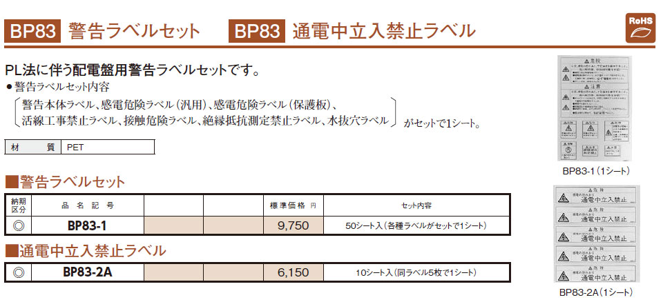 BP83-2A 通電中立入禁止ラベル