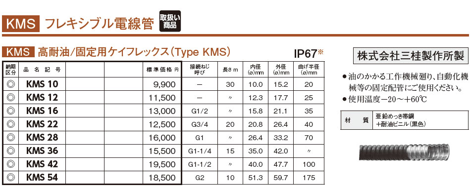 KMS 16 フレキシブル電線管   高耐油/固定用ケイフレックス