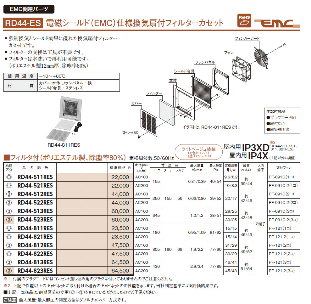 RD44-521RES 電磁シールド(EMC)仕様換気扇付フィルターカセット