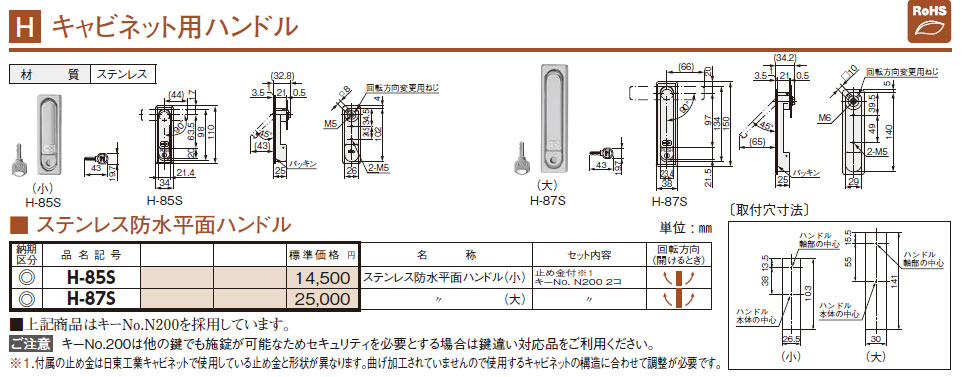 H-85S ステンレス防水平面ハンドル