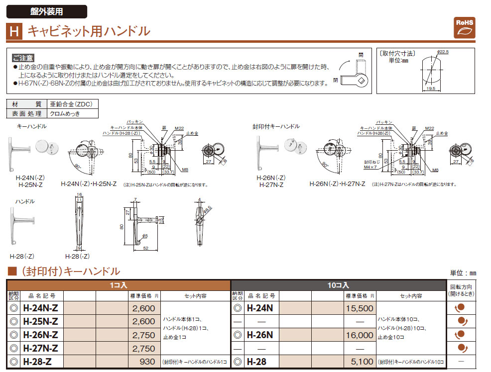 H-28-Z (封印付)キーハンドル 1コ入