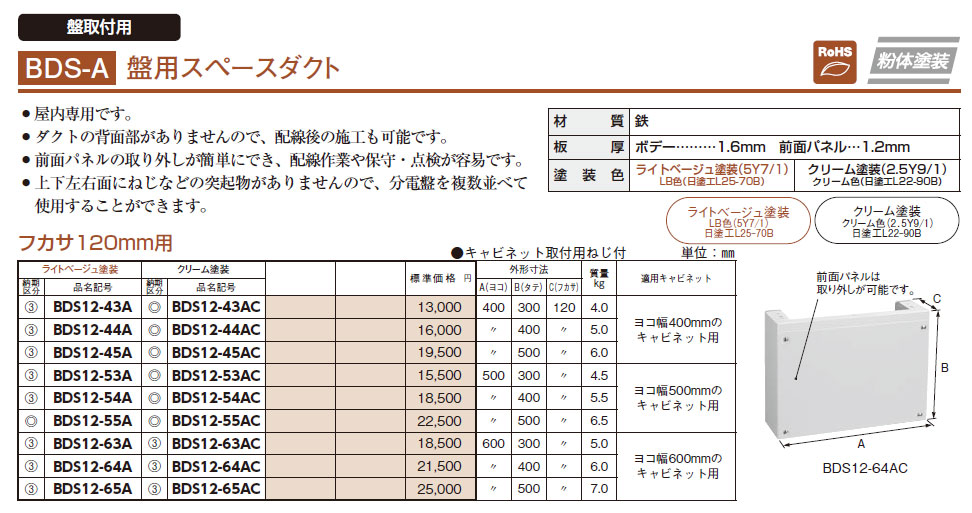 BDS12-45A 盤用スペースダクト フカサ120mm用
