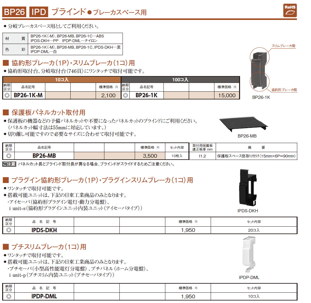 IPDS-DKH ブラインド プラグイン協約形ブレーカ(1P)・プラグインスリムブレーカ(1コ)用 20コ入