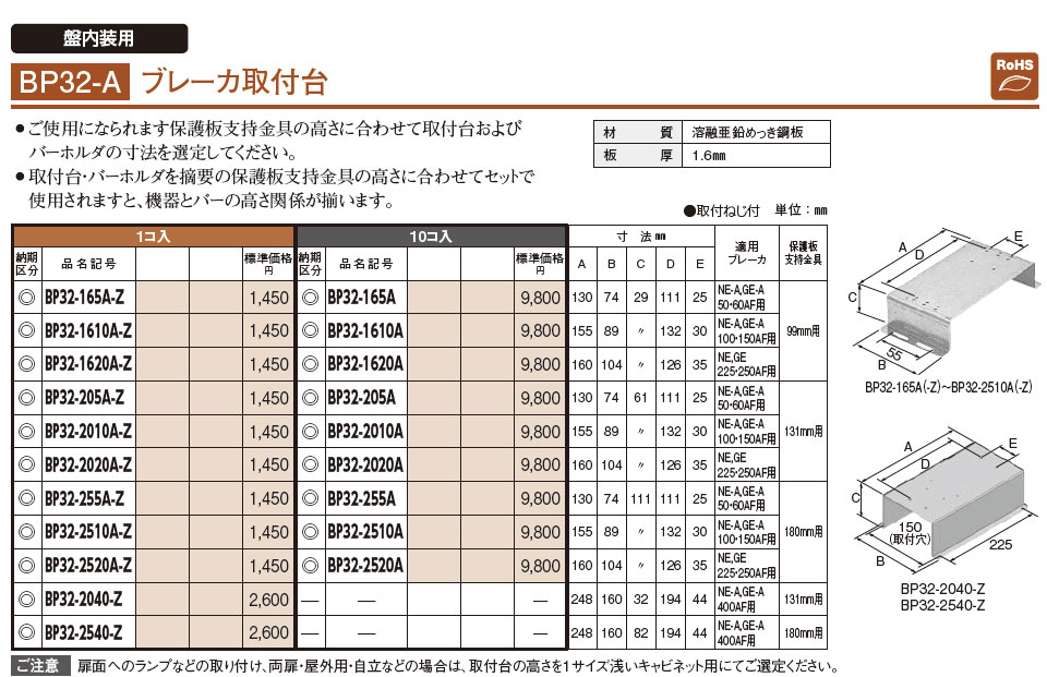 BP32-2010A-Z ブレーカ取付台 1コ入