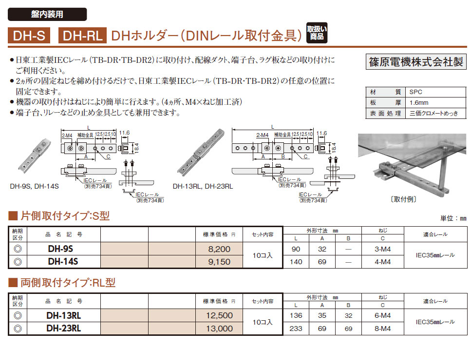 DH-14S DHホルダー(DINレール取付金具)片側取付タイプ:S型 10コ入