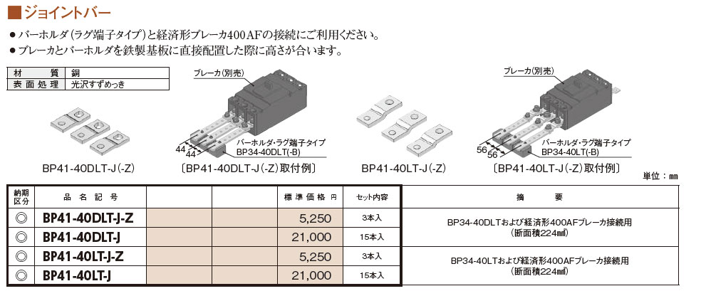 BP41-40DLT-J バーホルダ ラグ端子タイプ (ジョイントバー)