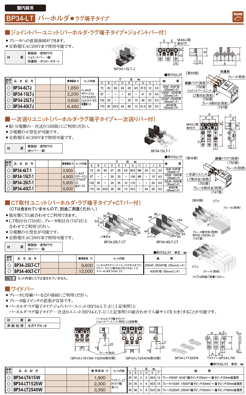 BP34-LT1525W バーホルダ ラグ端子タイプ (ワイドバー)