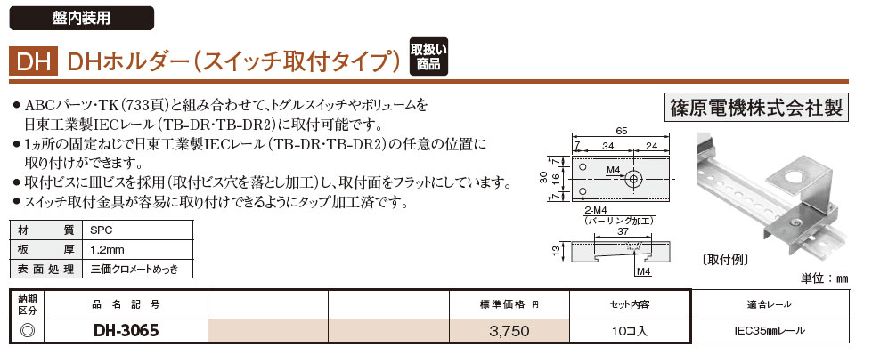 DH-3065 DHホルダー(スイッチ取付タイプ) 10コ入