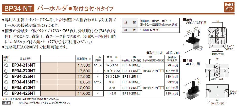 BP34-216NT バーホルダ 取付台付 Nタイプ