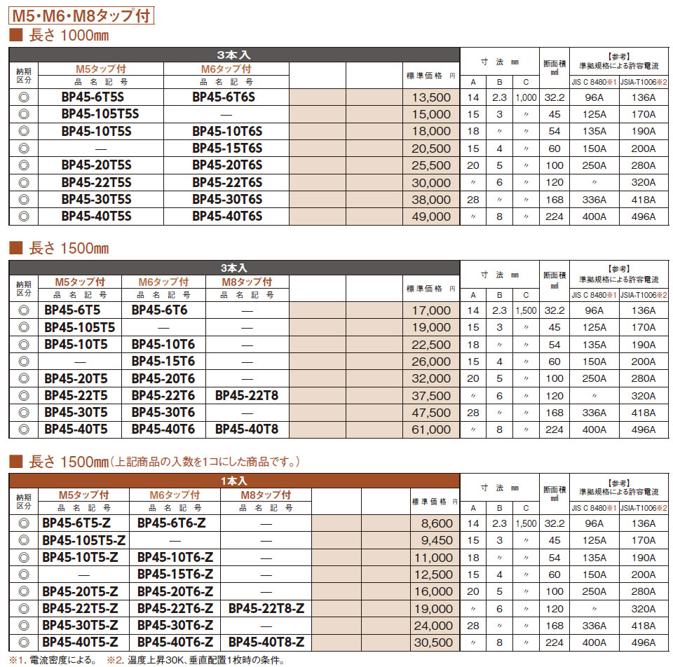 BP45-40T5 銅バー 長さ1000mm M5タップ付 3本入