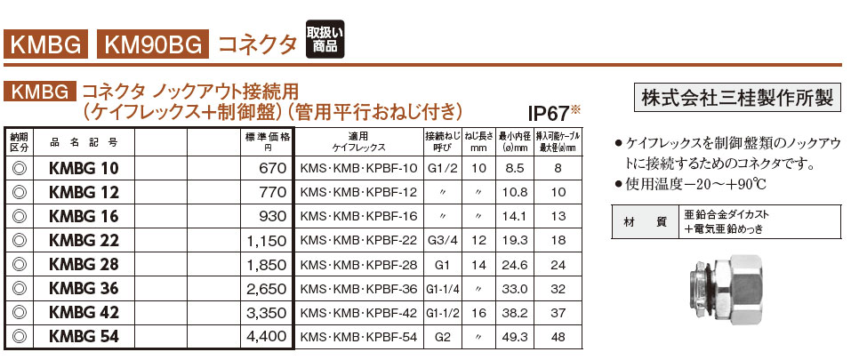KMBG 54 フレキシブル電線管  コネクタ ノックアウト接続用