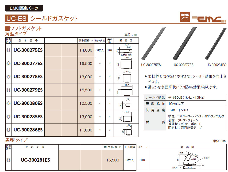 UC-300275ES シールドガスケット ソフトガスケット 角型タイプ