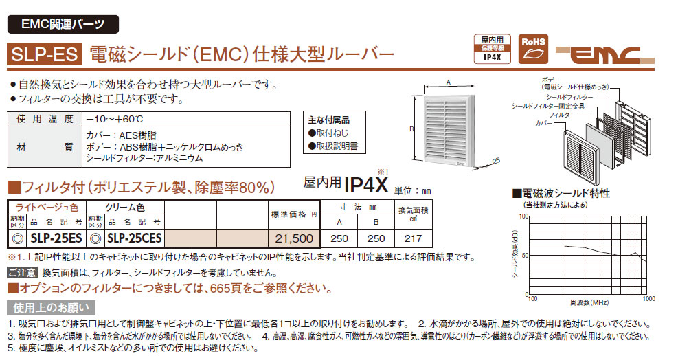 SLP-25ES 電磁シールド(EMC)仕様大型ルーバー