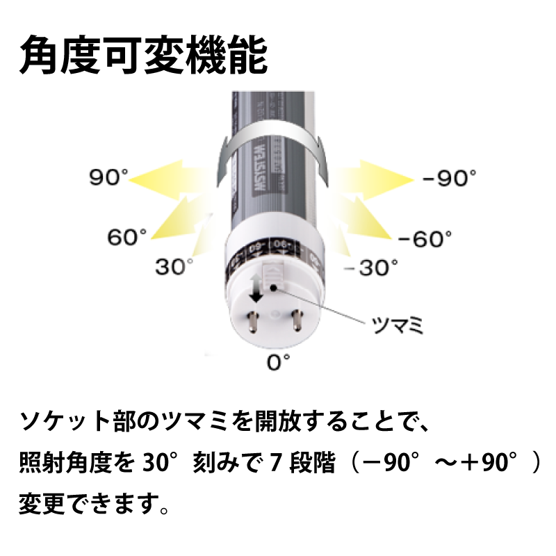 - 角度可変で照射方向を調整可能(/R:30°刻み 7段階)